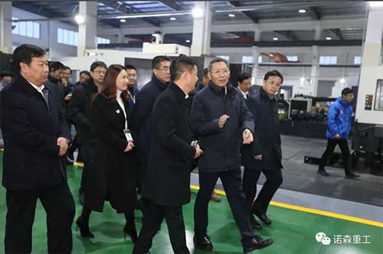 2019年12月18日,鹽城市委書記戴源、市長曹路寶及副市長、濱??h委書記孫軼、縣長劉永軒等領(lǐng)導一行蒞臨江蘇諾森重工有限公司參觀考察企業(yè)發(fā)展情況。諾森重工董事長劉春梅,總經(jīng)理王海濤全程陪同視察。